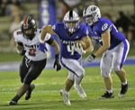 GP #4 makes this leaping catch for GP's first TD in the first quarter. NS #28 defends Grants Pass wins over North Salem, 56-42. Photos By:Joel Takarsh