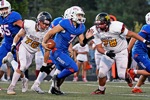 North Valley's Wyatt Bell scoops up the ball after Hidden Valley failed to field a Knight kickoff in the first quarter on Friday night, Sept. 19, in Murphy. Bell's recovery gave North Valley the ball and the Knights went on to score a touchdown on the ensuing drive.